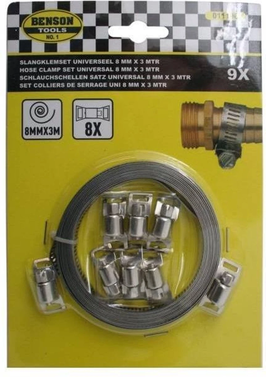 Zoekwoorden: Slangklem, Universeel, Vastzetten, 3 meter x 8 mm, 9 Delig