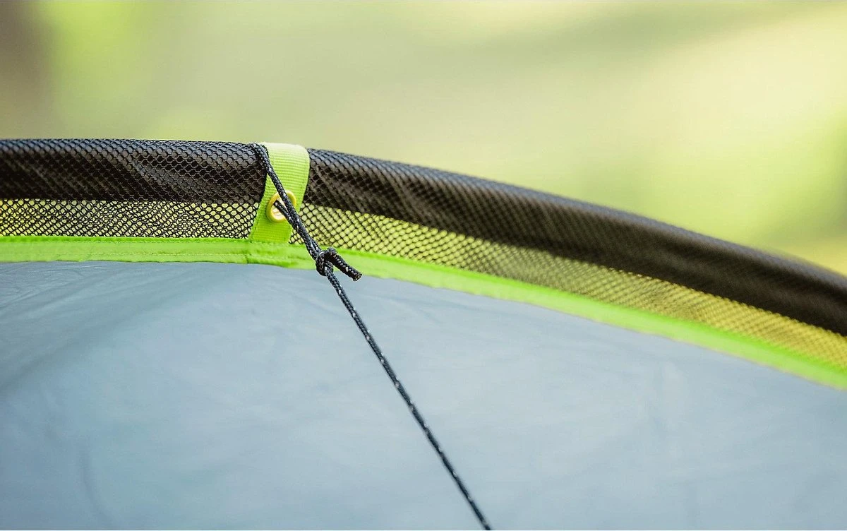 Naast de royale ruimte geniet je in deze 6 persoons tent van allerlei praktische extra’s. Zo is de tent op verschillende plaatsen voorzien van extra ventilatiegaten. Dit zorgt voor voldoende frisse lucht en het voorkomt condensvorming. Ook vind je in iedere ruimte een ring om een lantaarn op te hangen. De hoofdtent is bovendien voorzien van een kabelinvoerpunt voor toegang tot een stroompunt buiten de tent.