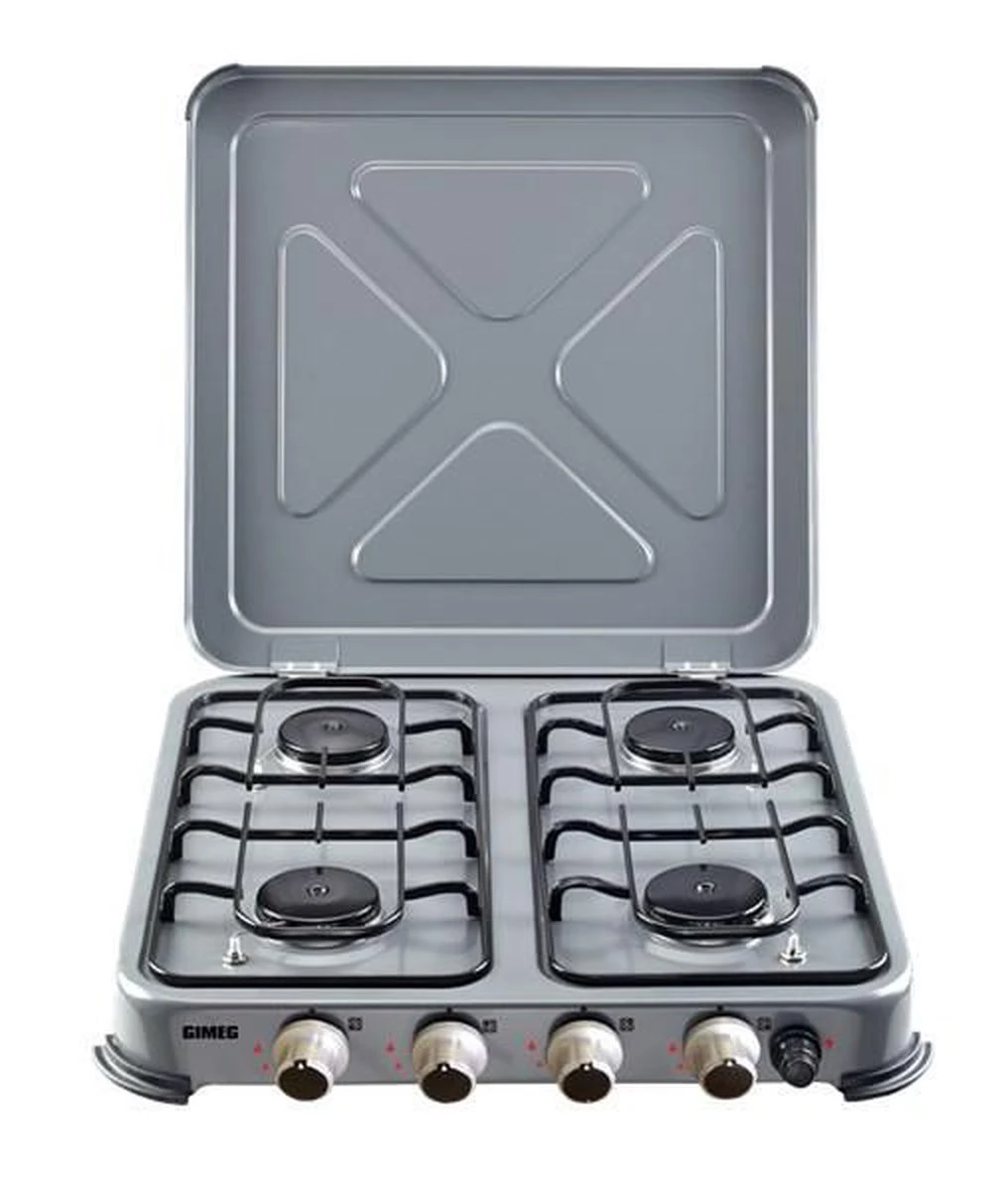Met dit ruime vierpits kooktoestel van Gimeg maak je op vakantie de lekkerste maaltijden klaar. Dit gaskooktoestel is zeer veilig te gebruiken en maakt koken op de camping net zo makkelijk als thuis.