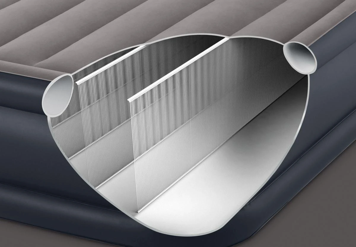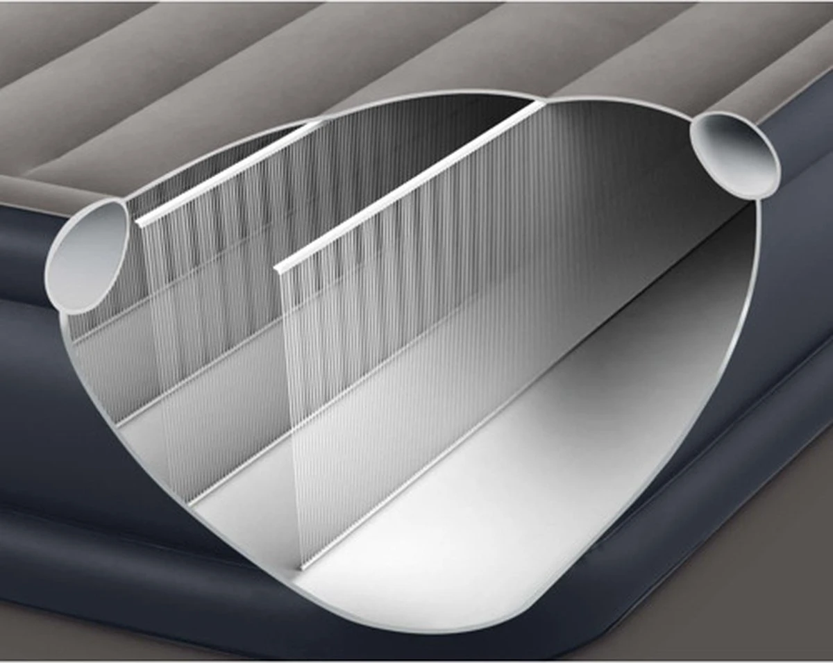 De tweekamerconstructie zorgt ervoor dat de hoeslakens op hun plek blijven zitten en door de zachte toplaag in combinatie met de Fiber-Tech Technologie biedt het Intex Deluxe Pillow Rest Raised Classic luchtbed meer comfort.