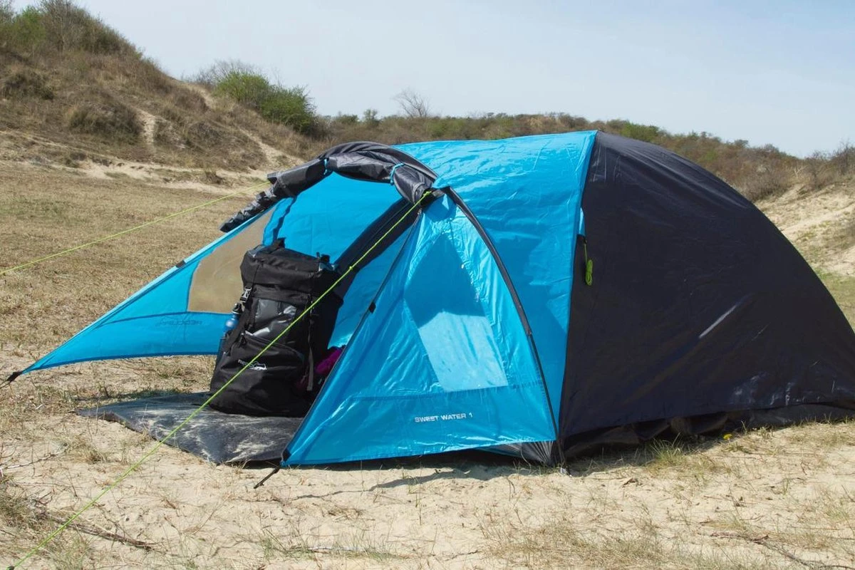 – GEAR- tenten :model Riverton 1 tot 4 personen met voortent The RIVERTON 1-4 pers ” tent DOME voor 4 personen is een echte topper.!!!!!! Zoek jij een tent voor een tripje naar Zuid-Europa of voor een meerdaags festival, op de camping,out in de natuur ? Dan is ”The RIVERTON ” de tent die jij zoekt ! De plus punten van ”The RIVERTON” tent:4 pers ideaal op de fiets door zijn compact opbergen in ruime handige opberg hoes met afsluiting op doortrek met rugzak een topper!!!!- lekker ruim