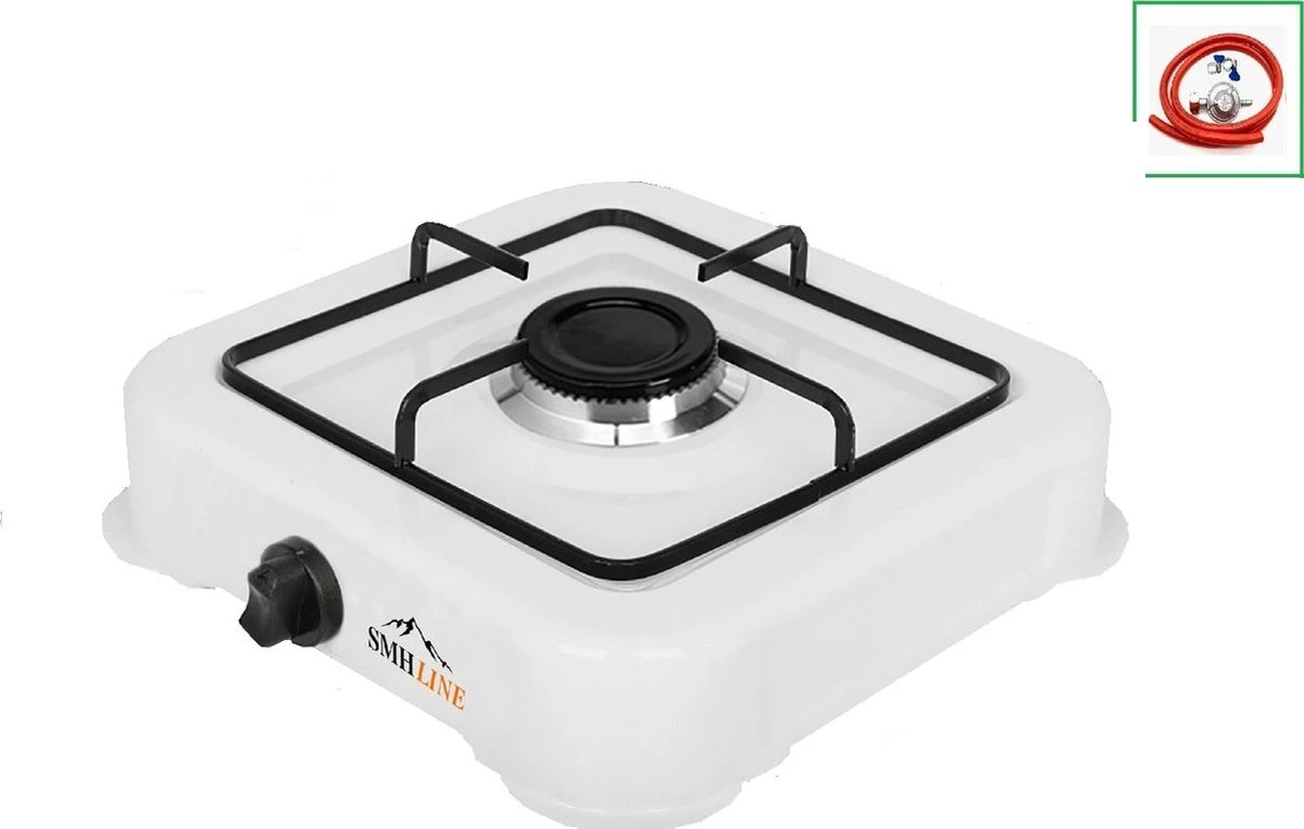 Dit Kooktoestel van SMH LINE® kooktoestel 1-pits heeft gefixeerde rvs-brander en 1 krachtige 2,5 kw brander, Door middel van een slangpilaaraansteking kan je het gastoestel aansluiten op een propaan of butaan gasfles. Eenmaal aangesloten op gas, kan je het kooktoestel gebruiken en de lekkerste maaltijden klaarmaken. Ben je klaar met koken? Dan maak je het toestel gemakkelijk schoon dankzij de afneembare pannendrager en geëmailleerde onderdelen.